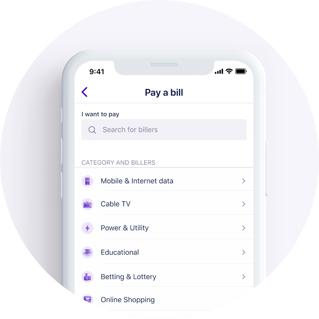 You’re ready to go. Carry out all your banking transactions within the app, from investments to loan applications and bill payments.