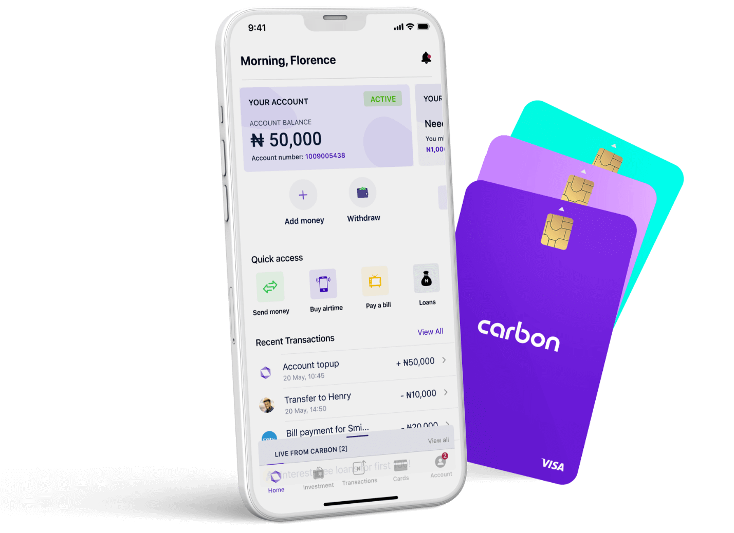 Unlock the power of money with a free Carbon bank account. Pay bills, transfer money, get instant loans and enjoy high-interest savings, all in one place